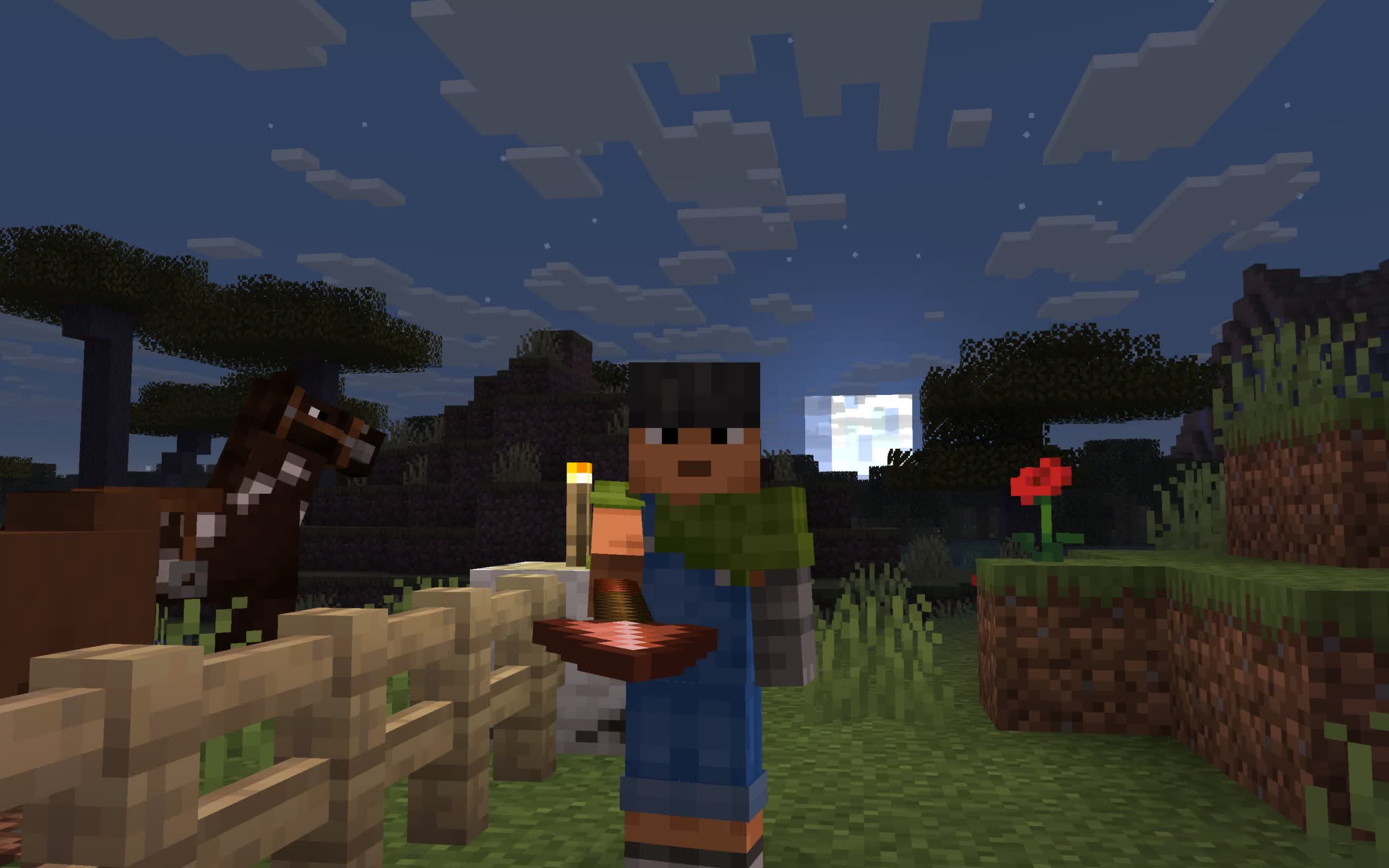 It can also be about adventuring with friends or watching the sunrise over a blocky ocean. It's pretty. Brave players battle terrible creatures in The Nether, which is more scary than pretty. Or, if you'd prefer something calmer, you can visit a land of giant mushrooms – if that's more your cup of tea.