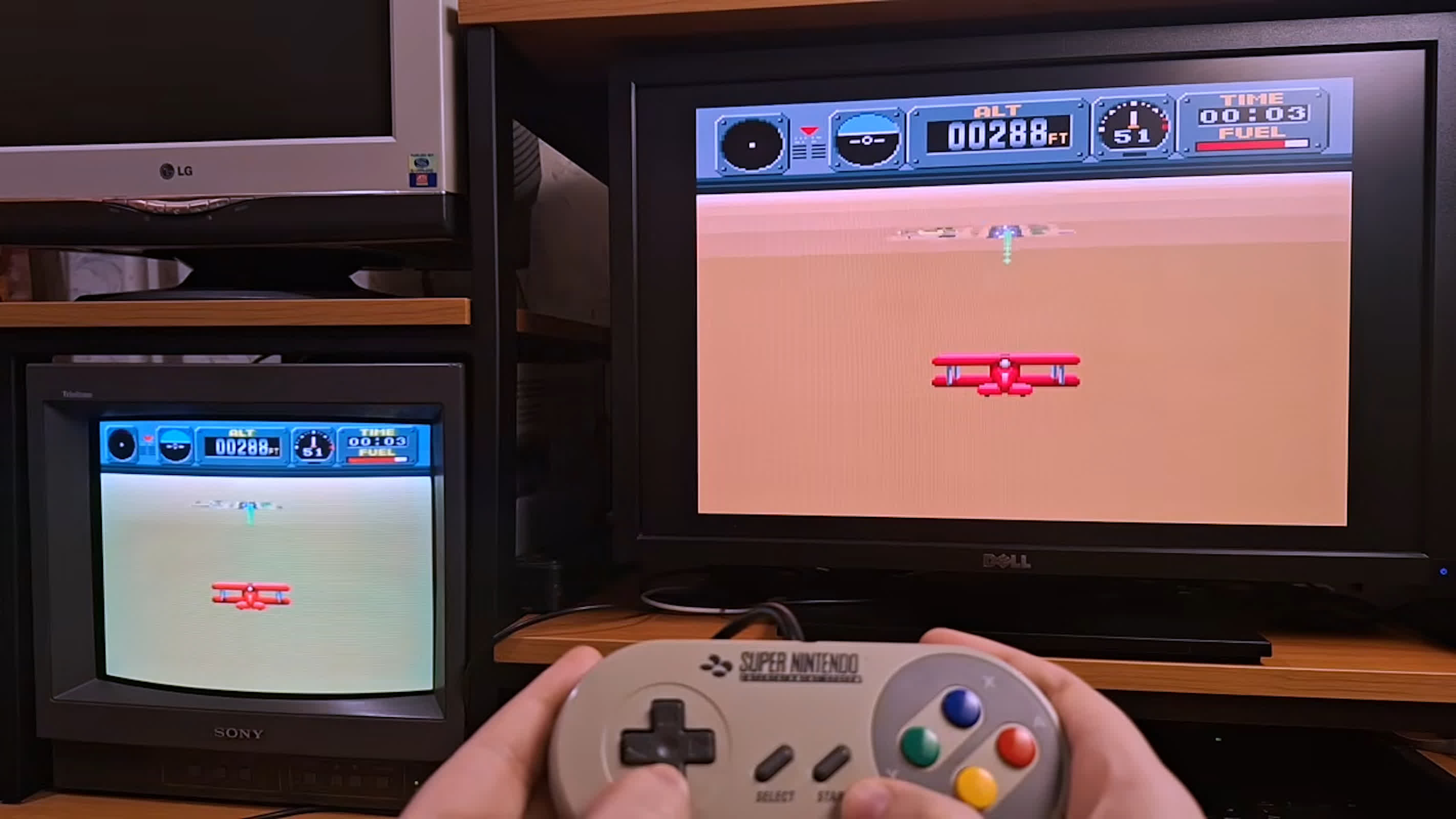 Many SNES games shift between display resolutions – from menus to in-game sequences – to create specific visual effects. On original hardware, these transitions were handled seamlessly by CRT displays. On HDMI-equipped flat panels, however, maintaining sync is far more difficult. The Super Switch HD's buffer compensates for these resolution changes in real time.