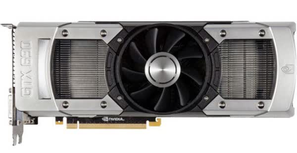 The Nvidia GeForce GTX 690 features 3,072 CUDA cores, 4GB of GDDR5 RAM at 6.0Gbps running on a 512-bit bus and a base clock of 915MHz, although it can be boosted to 1019MHz. Video output is provided by three dual-link DVI ports and a single Mini-DisplayPort 1.2 output. Power is provided by two 8-pin connectors using a new 10-phase heavy duty power supply which is connected to a ten layer two-ounce copper PCB.